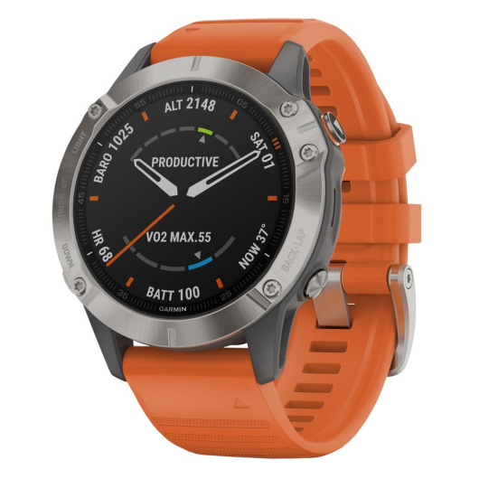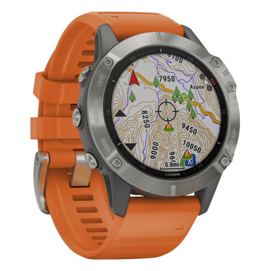 Умные часы Garmin Fenix 6 Sapphire Wi-Fi NFC, титановый/оранжевый